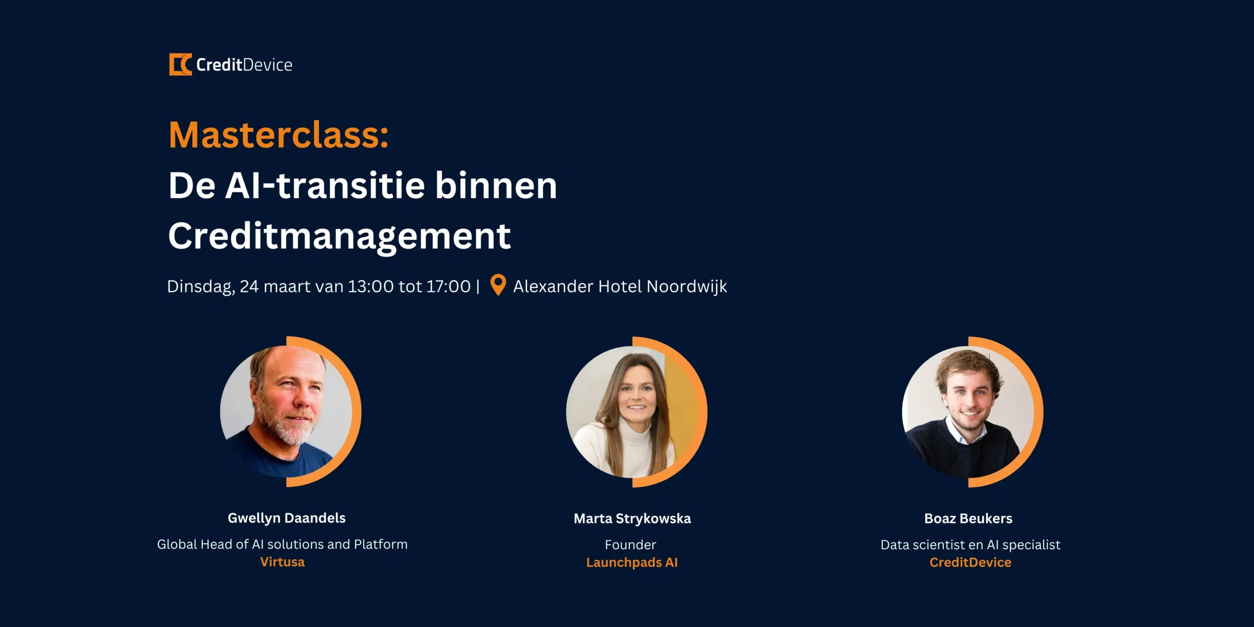 Op dinsdag 24 maart nodigt CreditDevice je uit voor een exclusieve Masterclass in het Alexander Hotel in Noordwijk. Een middag waarin we AI niet benaderen als hype, maar als iets dat je organisatie nú al raakt en de komende jaren fundamenteel gaat veranderen.